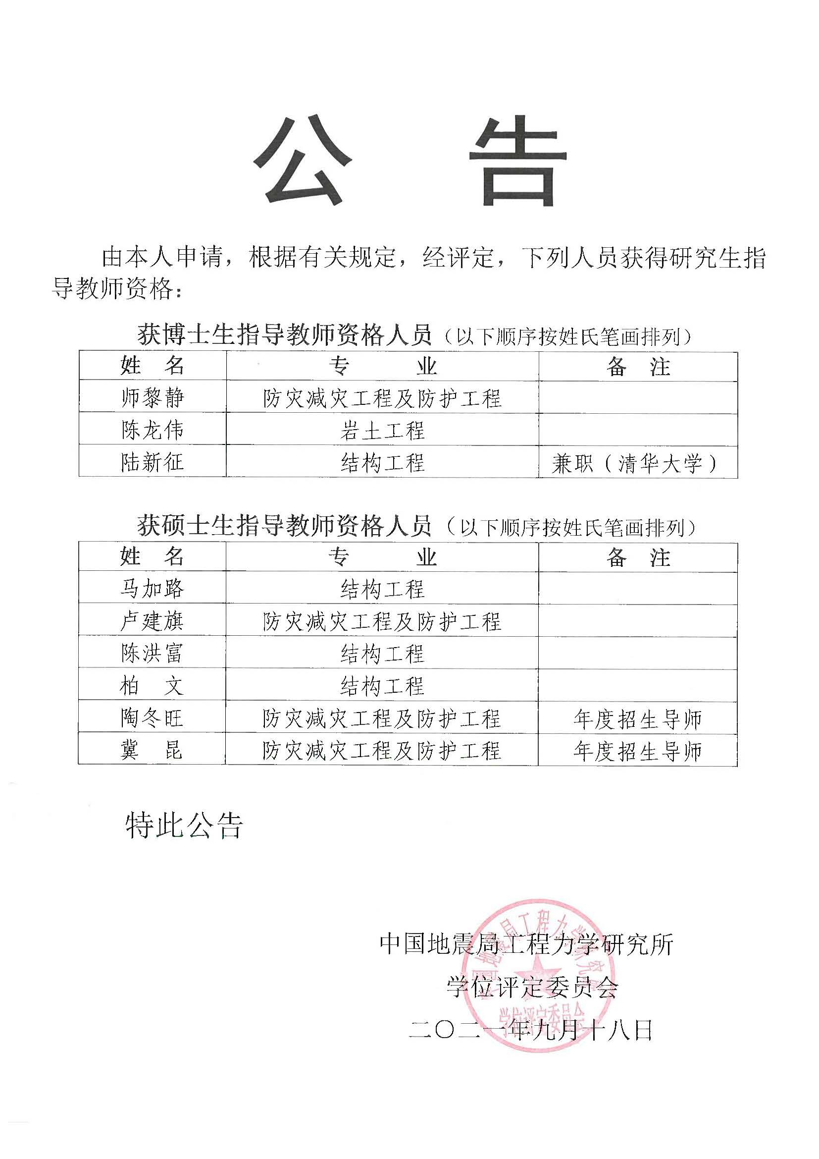 2021年研究生指導(dǎo)教師選聘結(jié)果公告