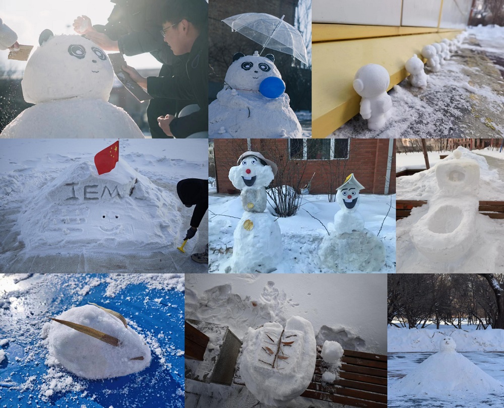 伴著冬日的暖陽,研究生們?nèi)宄扇壕奂谖宜鱾€角落,他們手持鏟子和搜集來的各種工具熱情洋溢地準(zhǔn)備著,有人運雪、有人滾雪球、有人塑形、還有人在精心地裝扮雪人,同學(xué)們忙得不亦樂乎,盡情享受著堆雪人比賽帶來的激情與快樂,仿佛把自己真摯的情感也融入了雪花之中。同學(xué)們充分發(fā)揮想象力和創(chuàng)造力,創(chuàng)作出各種各樣的雪人作品。這些雪人有的造型別致、有的栩栩如生、有的趣味十足,讓人忍俊不禁,充滿著冬季的歡樂與活力,成為工作區(qū)中一道道靚麗的風(fēng)景。經(jīng)全所職工共同參與,最終評選出優(yōu)秀作品3個。