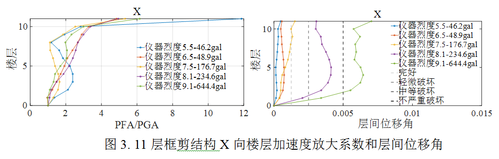 (4)結構的實有抗震性能表現要好于上述有限元分析給出的結果。按照所選取典型模型的有限元分析結果,儀器烈度記錄結果為8度和9度的區域很多房屋應該會出現中等或嚴重破壞,但現場實際表現似乎好于有限元分析結果。
