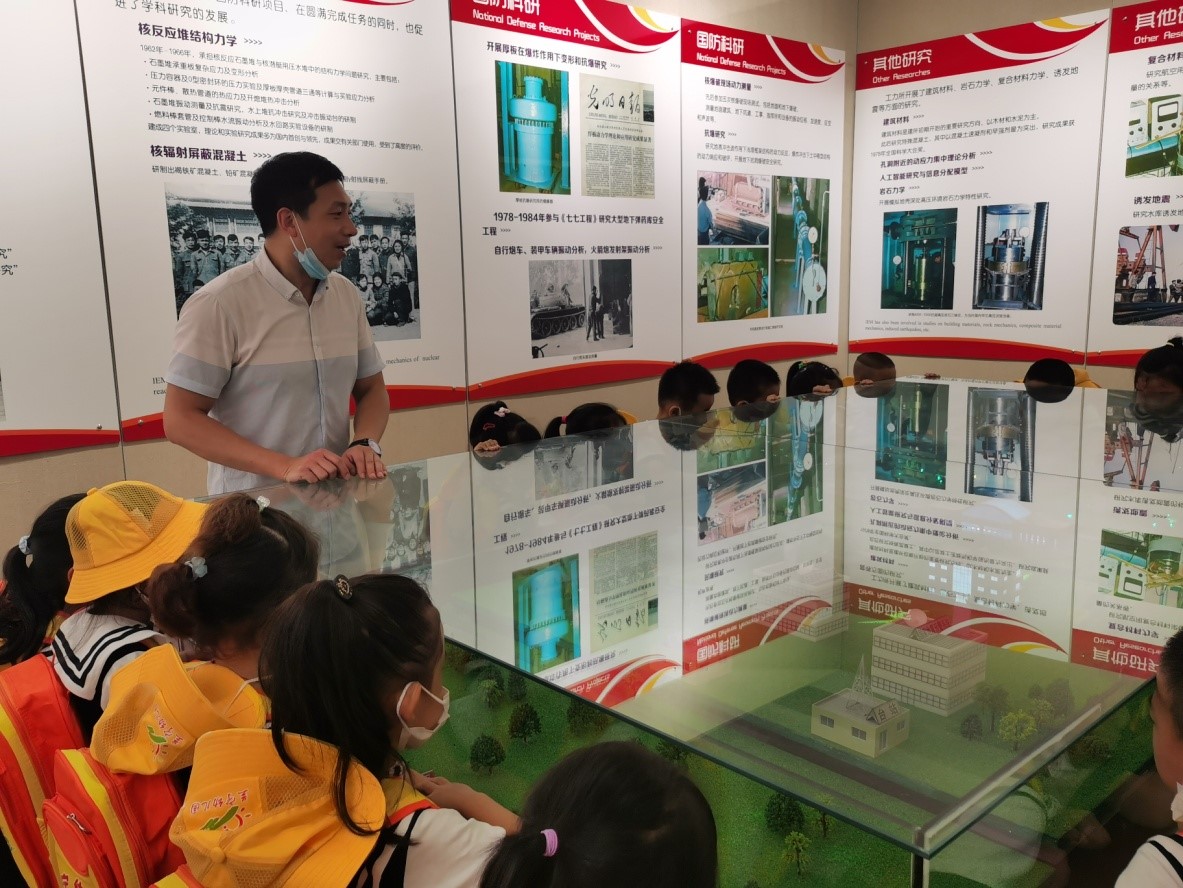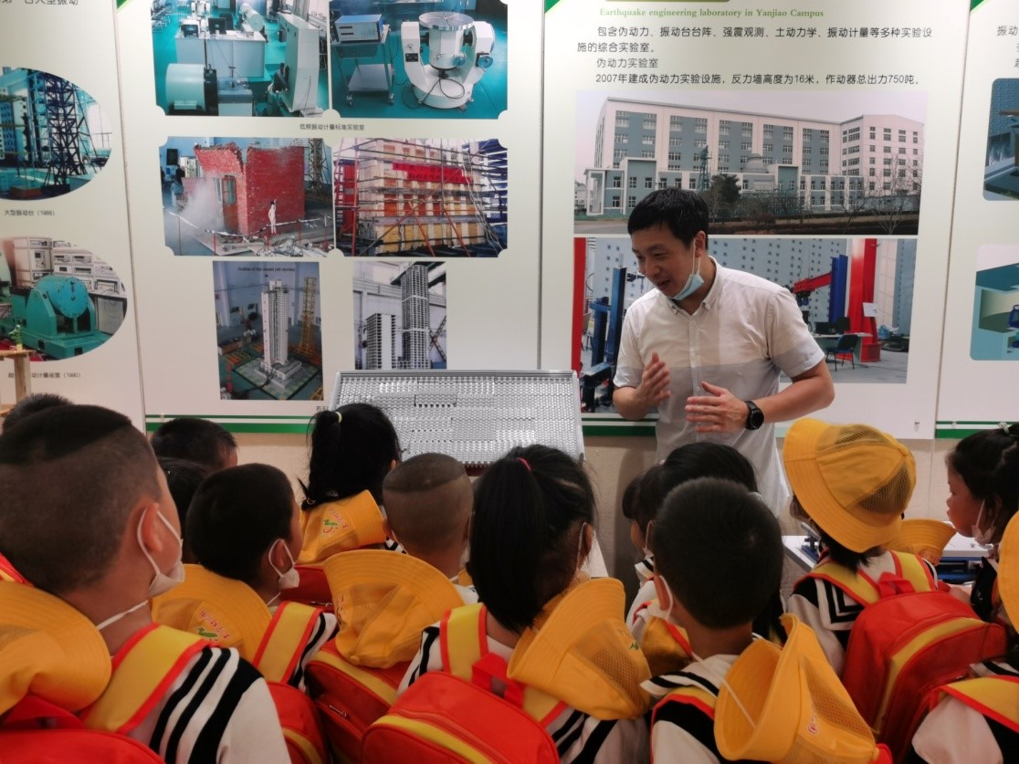 講座結(jié)束后,張昊宇博士帶領(lǐng)學(xué)生們進(jìn)行了一系列的科普實(shí)驗(yàn)。首先是參觀鐵路地震監(jiān)測(cè)預(yù)警系統(tǒng)展臺(tái),講解地震后該系統(tǒng)如何保障高鐵安全運(yùn)行的原理;其次回答學(xué)生關(guān)于“中國(guó)古建筑為何能夠跨越千年不倒”的問(wèn)題,為學(xué)生講解中國(guó)傳統(tǒng)木結(jié)構(gòu)的抗震機(jī)理;最后進(jìn)行的微型振動(dòng)臺(tái)模擬實(shí)驗(yàn)和搖擺墻結(jié)構(gòu)無(wú)損倒塌模型實(shí)驗(yàn)是活動(dòng)中學(xué)生們最喜歡的環(huán)節(jié),每一位學(xué)生都親手操作搖擺墻結(jié)構(gòu)無(wú)損倒塌模型,近距離直觀的認(rèn)識(shí)到不同建筑結(jié)構(gòu)抗震能力的強(qiáng)弱區(qū)別,學(xué)習(xí)了建筑結(jié)構(gòu)抗震的基本知識(shí)。