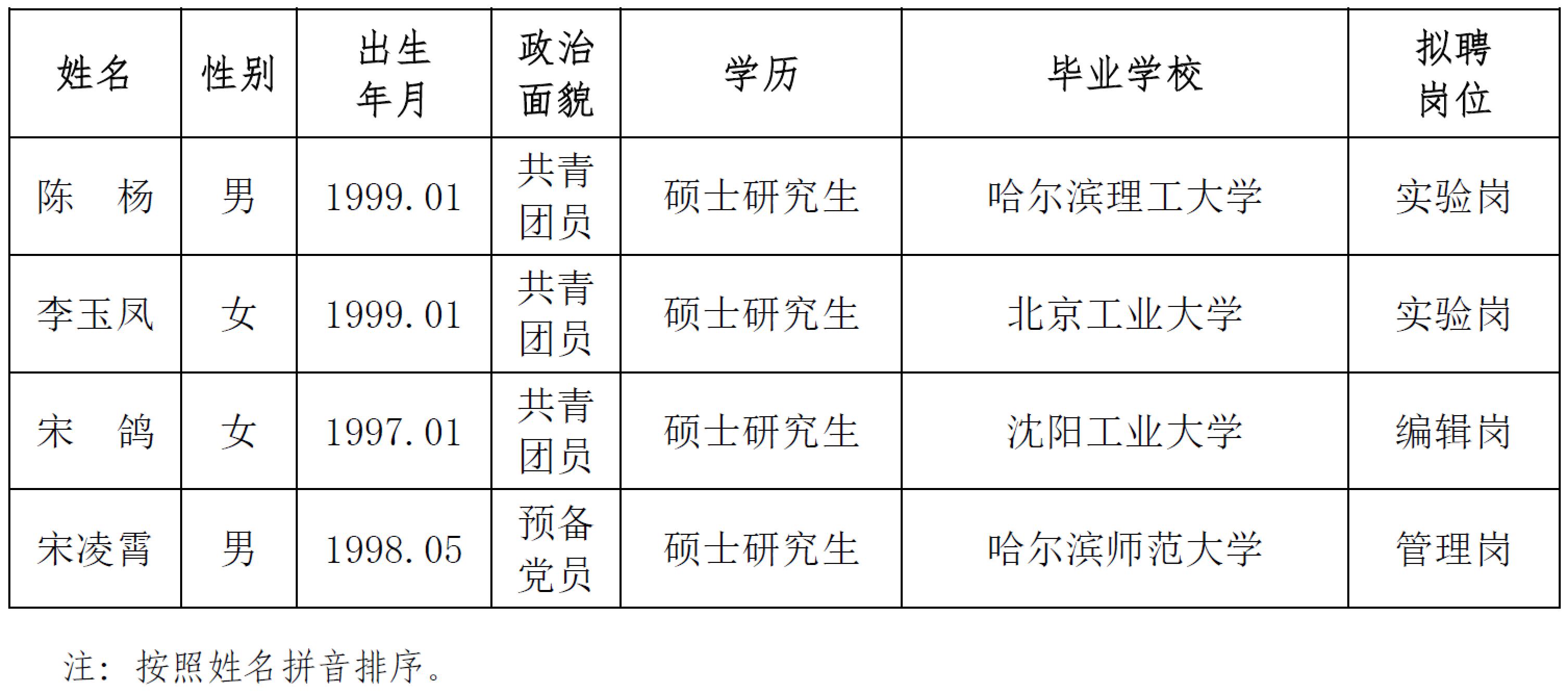 發(fā)布時(shí)間: 2024-05-14 點(diǎn)擊數(shù)量:13382根據(jù)中國(guó)地震局《關(guān)于貫徹執(zhí)行〈事業(yè)單位公開(kāi)招聘人員暫行規(guī)定〉的通知》文件精神和我所用人計(jì)劃,經(jīng)公開(kāi)發(fā)布招聘信息、資格審查、面試等程序確定擬錄人員?,F(xiàn)將擬錄人員相關(guān)情況公示如下,公示期7個(gè)工作日,期間如有異議請(qǐng)與中國(guó)地震局工程力學(xué)研究所人才資源部或紀(jì)檢室聯(lián)系,以個(gè)人名義反映情況的領(lǐng)署真實(shí)姓名,以單位名義反映情況的須加蓋公章。