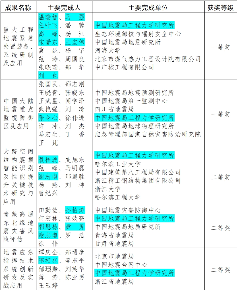 發(fā)布時間: 2025-07-17 點擊數(shù)量:8898近日,中國地震局公布了2025年度防震減災(zāi)科研成果獎評選結(jié)果,我所作為牽頭單位完成的成果獲一等獎1項、二等獎1項,作為參與單位獲一等獎1項、二等獎2項。